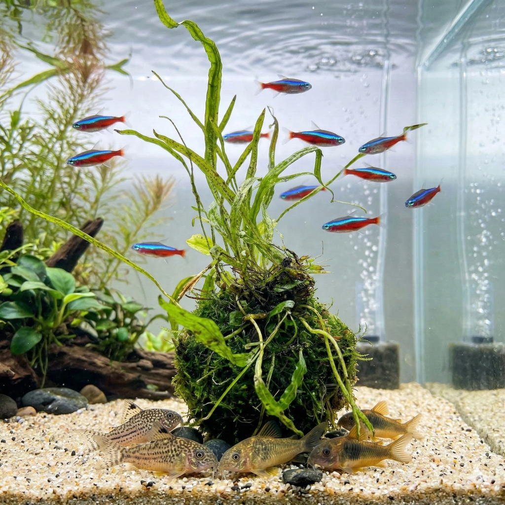 The goal is balance. By mixing floor placement with occasional mounted balls, your tank gains dimension while keeping the moss healthy.
